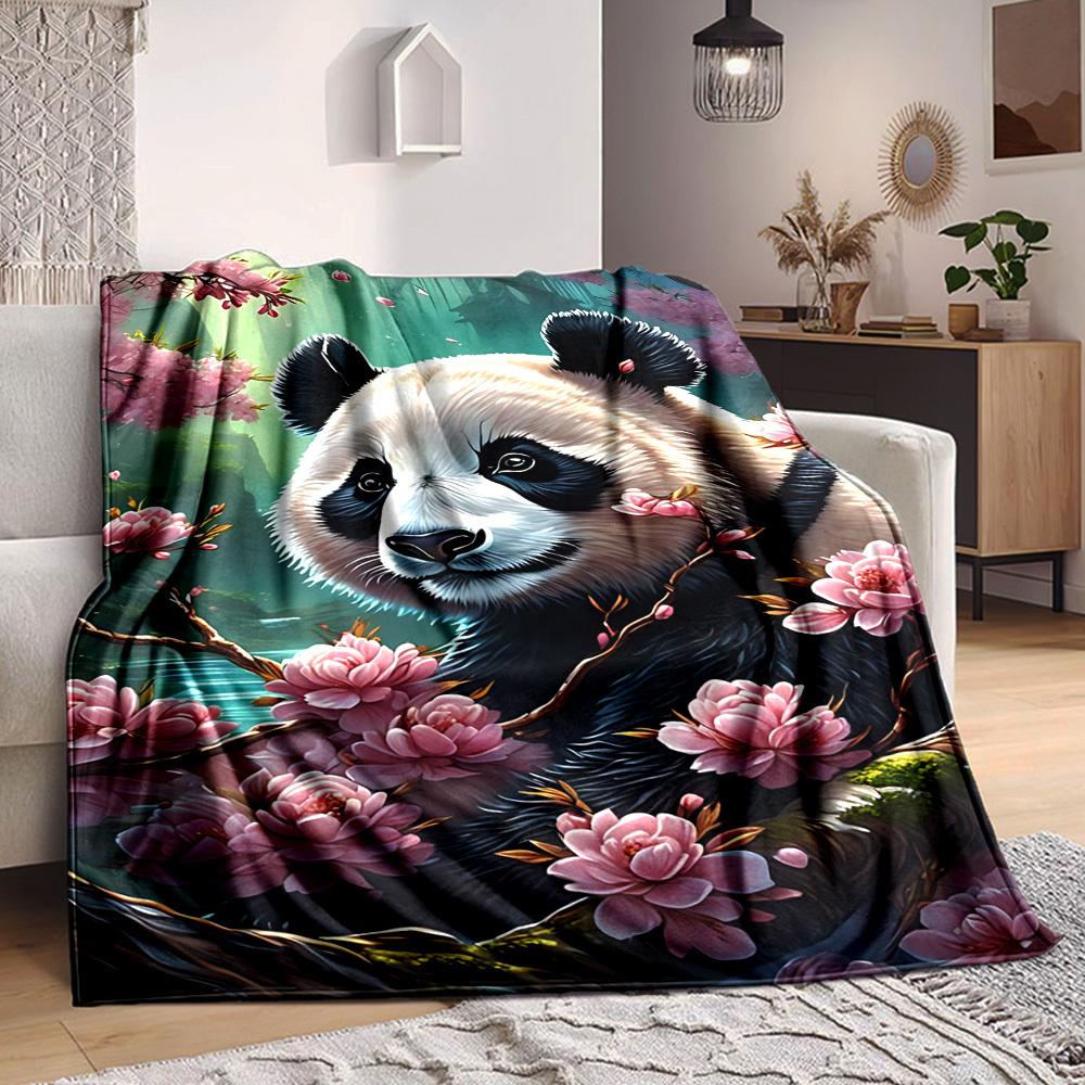 1pc Panda, Cherry Blossom Blanket Lightweight Blanket Throw Blanket For Sofa, Bed, Travel, Camping, Livingroom, Office, Couch, Chair yy251010099