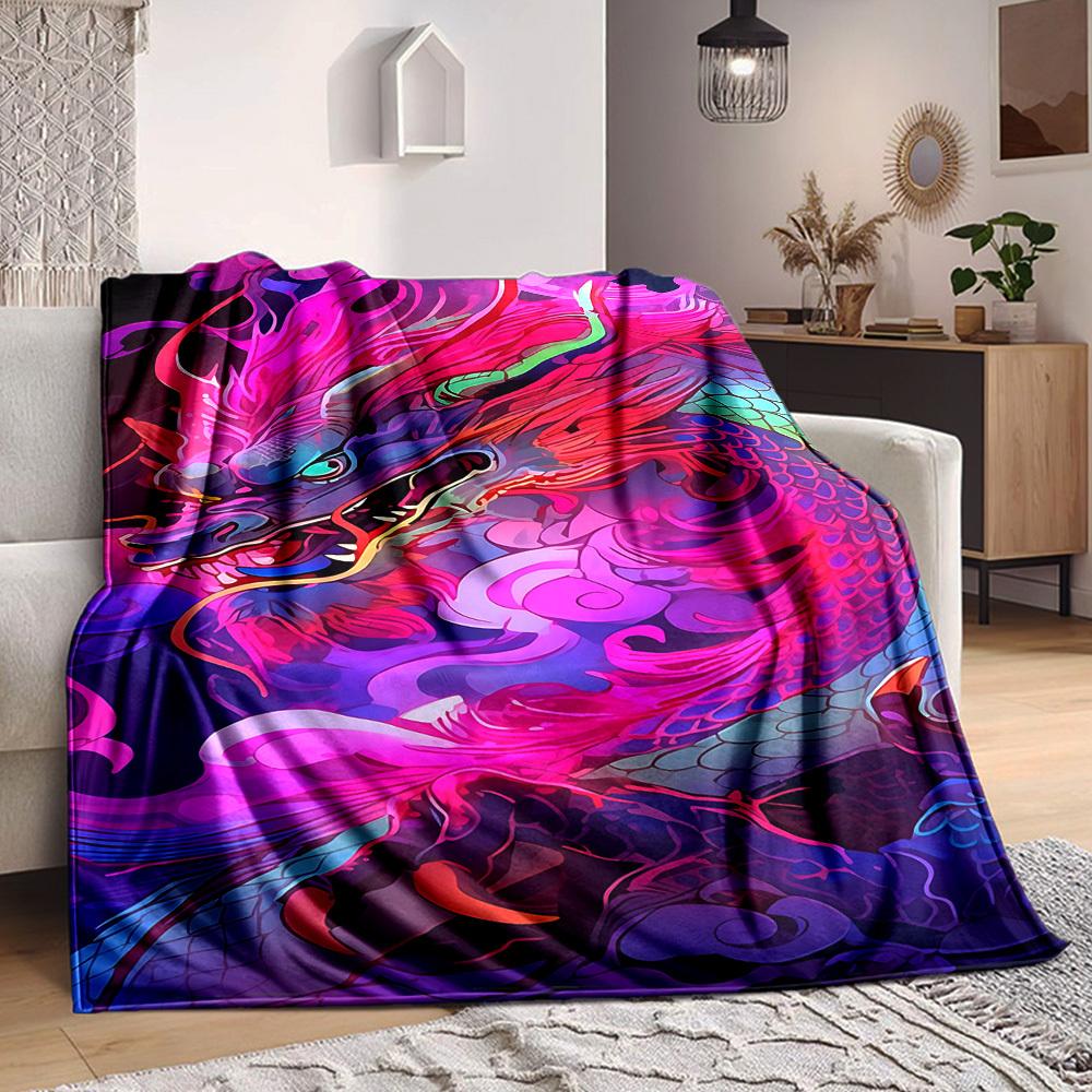 1pc Dragon Art Blanket Lightweight Flannel Blanket Throw Blanket For Sofa, Bed, Travel, Camping, Livingroom, Couch, Chair, And Bed yy2509026147
