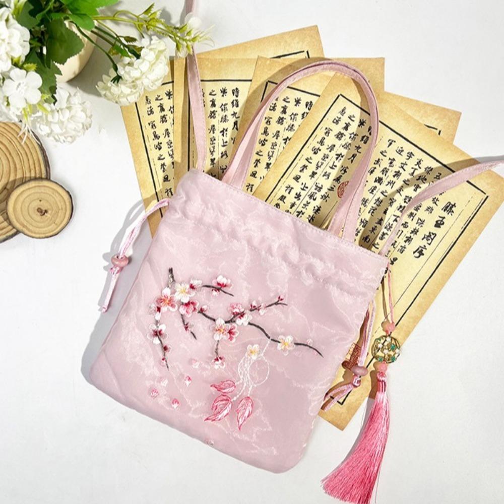 Organza Hanfu Embroidery Handbag Sweet Small Purse Bag Chinese Style Drawstring Bucket Bag Daily
