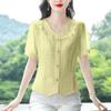 Summer Women Black V Neck Ruffle Sleeve Casual Shirt Blouse