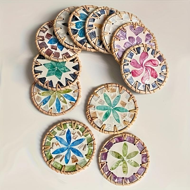 Handwoven Rattan Coasters Colorful Nordic Southeast Asian Shell Heat Resistant Table Mats