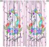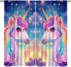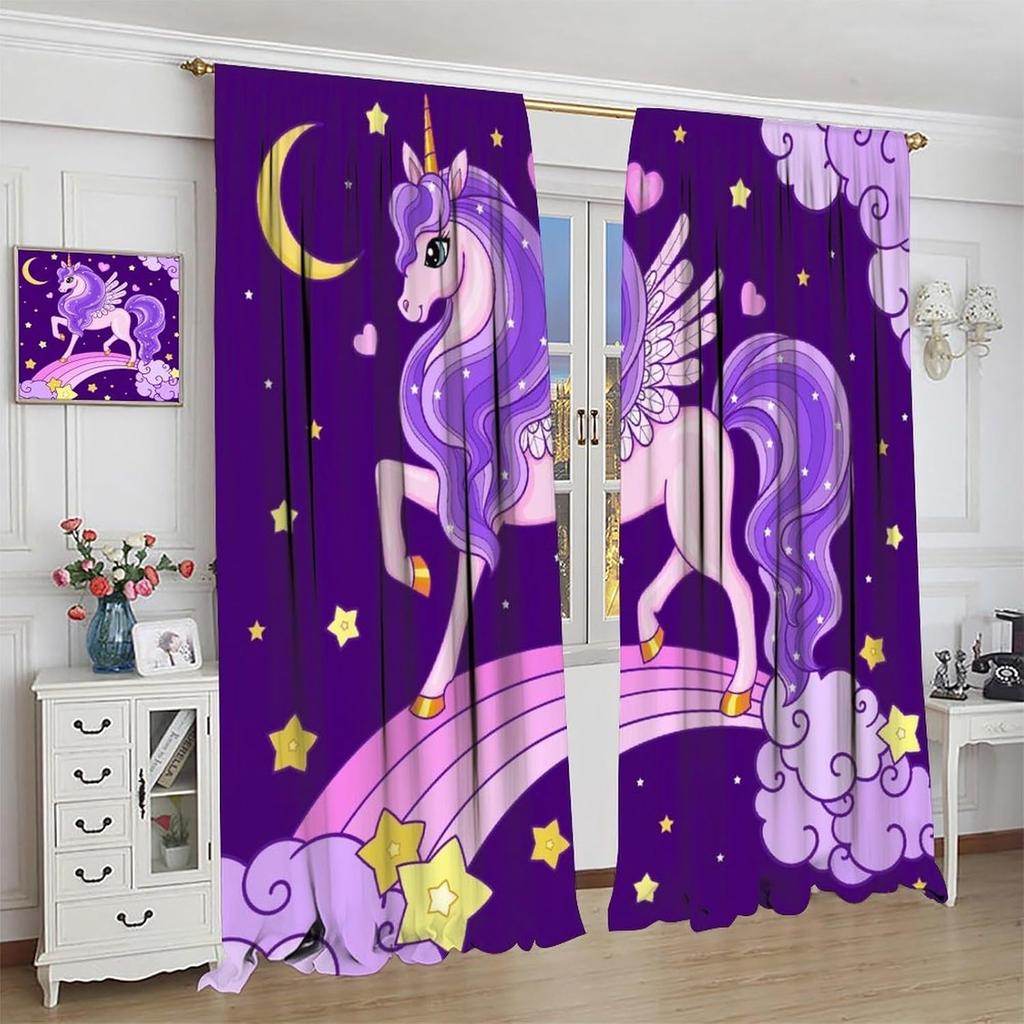 Purple Unicorn Curtains Girls Fantasy Mystery Fairytale Clouds Stars Magic Unicorns Window Drapes Kids Nursery Made Of Polyester