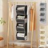 1 Set Collapsible Hanging Closet Organizer Adjustable Wardrobe Storage System with Hooks 4 Tier Closet Shelves Foldable Fabric Storage Bins for