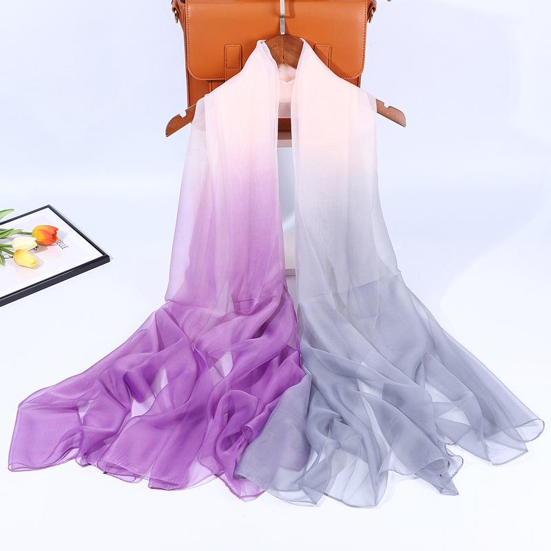 Gradient color silk scarf for autumn and winter, women's large sheer scarf, outdoor fashion scarf, sun protection shawl, beach scarf, stylish
