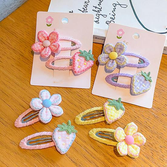 Hairpin Handmade Fabric Flowers Strawberry Embroidery Decor Soft Wrapped BB Clip Kids Pastoral Style Anti-Slip Hair Accessories