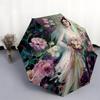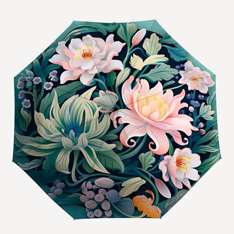 1pc Floral Garden Automatic Open/close Folding Compact Umbrella, 8-Rib Sturdy Canopy, Lightweight Portable, Everyday Use, Gift, Outdoor Umbrella, Trav