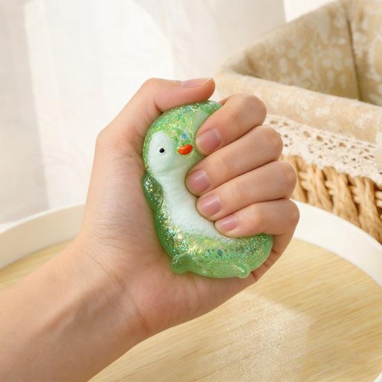 This adorable penguin-shaped squeeze toy features a translucent texture filled with radiant glitter powder, offering both visual appeal and a satisfying tactile experience. Made from soft, waxy maltose material, it rebounds slowly without stickiness, providing a soothing and stress-relieving sensation when squeezed and released.