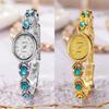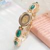 Ladies Vintage Bracelet Watch Retro Oval Dial Quartz Wristwatch Elegant Faux Gemstone Dress Watch for Office Date Party