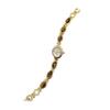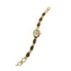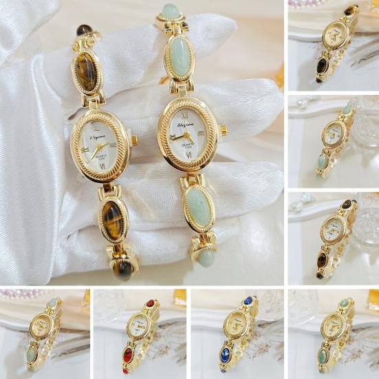Premium Alloy Metal Construction: Crafted from high-quality alloy, the watch case and bracelet offer exceptional durability and resistance to wear. This material maintains a bright, polished finish that resists oxidation, ensuring the watch retains its lustrous appearance even after prolonged use. Its sturdy yet lightweight nature provides comfortable all-day wear without compromising on style. Elegant Faux Gemstone Inlay Design: The bracelet features multiple oval-shaped faux gemstones, each meticulously set within a golden metal frame. This intricate inlay work adds a luxurious shininess and unique character to the watch, making it a standout accessory that elevates any outfit with refined sophistication and glamour. Classic Oval Dial with Retro Charm: Showcasing an oval-shaped dial in golden frame, the watch combines vintage aesthetics with timeless elegance. Roman numeral hour markers enhance its classic appeal, creating a graceful look that complements both casual and formal attire while celebrating traditional watchmaking artistry. Reliable High-Quality Quartz Movement: Powered by a precise quartz mechanism, this watch guarantees stable and accurate timekeeping suitable for everyday wear. The dependable movement ensures minimal maintenance while delivering consistent performance, blending practicality seamlessly with stylish design. Versatile Women's Fashion Accessory: Designed to be light and delicate, this piece functions as both a sophisticated timepiece and an elegant bracelet-style jewelry item. Perfect for daily wear or special occasions, it serves as a thoughtful gift that reflects refined taste and enhances any woman's accessory collection.