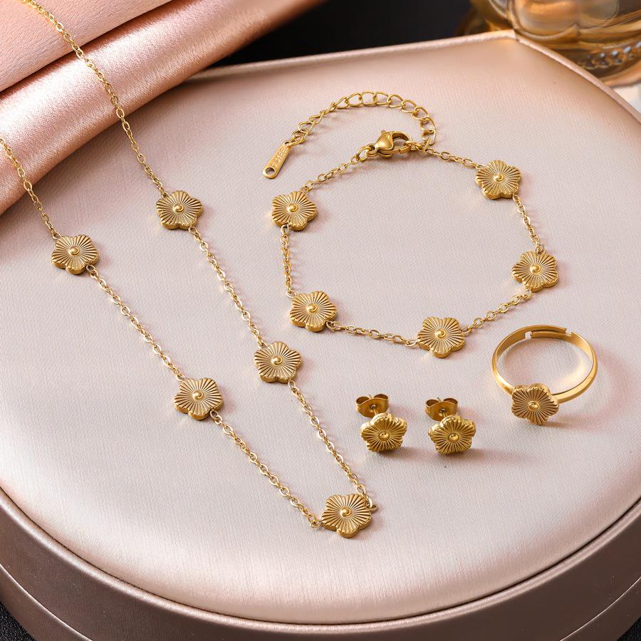 9mm Five-Petal Flower Jewelry Set: Bracelet, Necklace, Earrings, Ring in Women's Stainless Steel