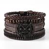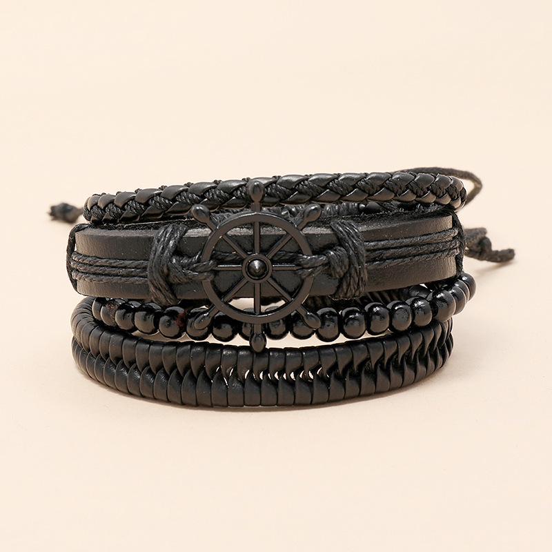 4-Piece DIY Weaving Bracelet Set: Fashionable Black & Brown Ship Wheel Cowhide Bracelets for Men & Women, Retro Style Jewelry.