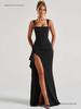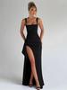 Women Elegant Solid Straps Slit Ruched Patchwork Sexy Bodycon Maxi Dress Summer Outfits Evening Party Birthday Dresses