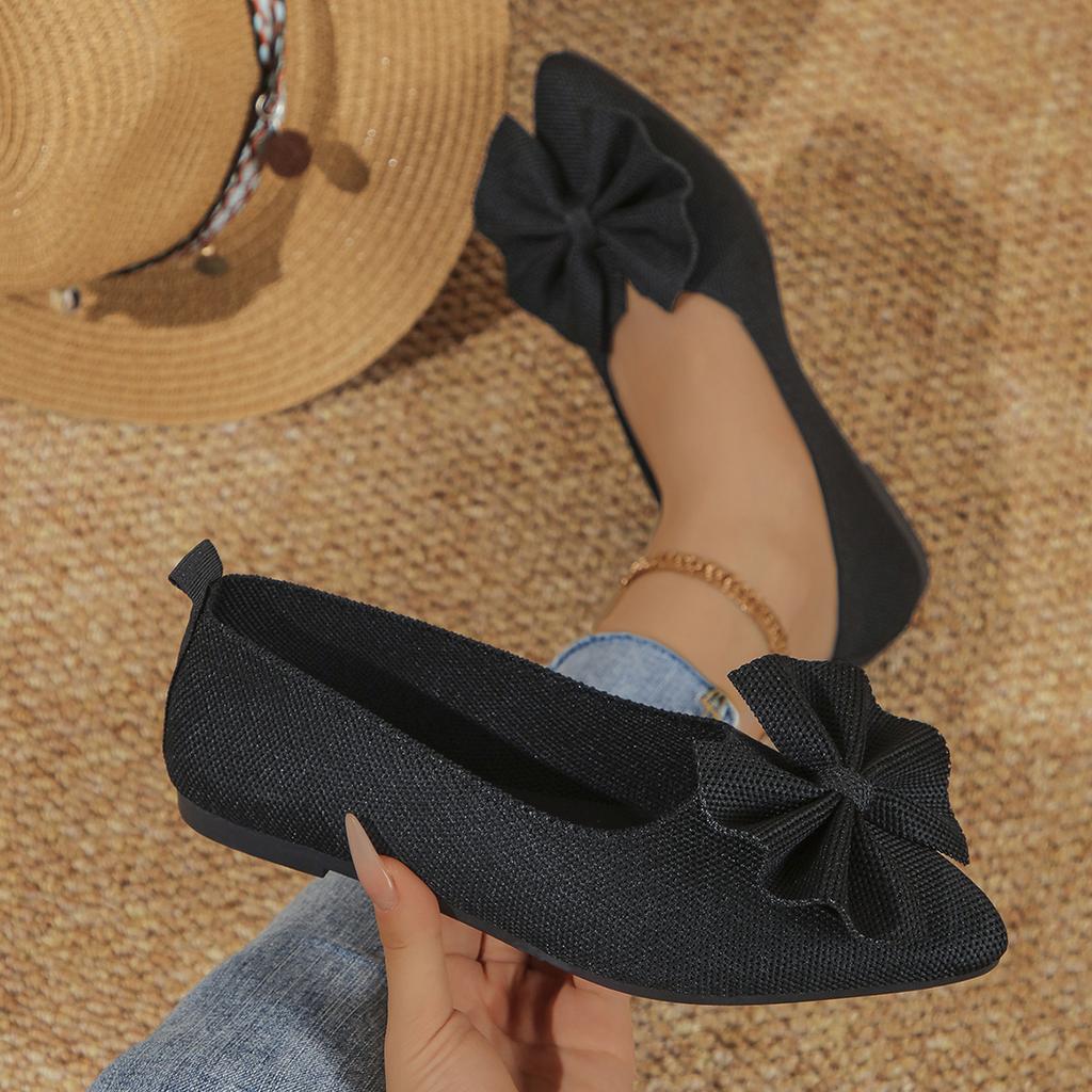 Flat-bottomed fly-woven single shoes 2025 new large-size pointed head shallow mouth bow foot cover four-season comfortable Doudou shoes women