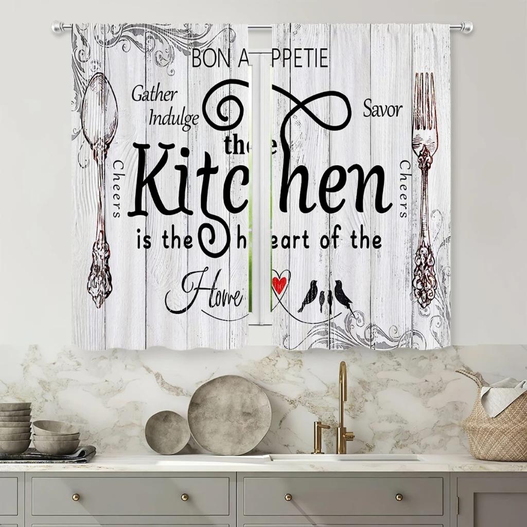 Retro Creative Print Curtain Kitchen Dining Room Living Decoration Set Of 2 Made Polyester With Rod Pocket Washable Sitting Ready