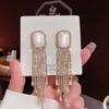 1 Pair Dangle Earrings Bowknot Shape Shining Rhinestones Lady Earrings Heart Imitation Pearls Tassel Jewelry Accessory