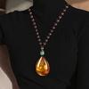 Retro Amber Pendant Necklace For Men And Women Long Pendant Sweater Chain Mother's Day Gift