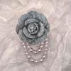 1Pcs French Leather Lapel Pin Corsage Bow Tie Accessory Black And White Plaid Bow Camellia Flower Pearl Tassel Brooch For Women