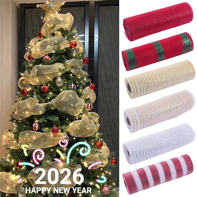 Christmas Tree Decorations Mesh Ribbon - For Wreath, Bow, Garland | Christmas/New Year Home Decor & Navidad Gift Accessories