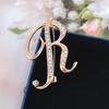 Fashion Women Rhinestone Brooch A-Z English Letter Gold Color Metal Pins Crystal Alphabet Jewelry Shirt Clothes Accessories Gift