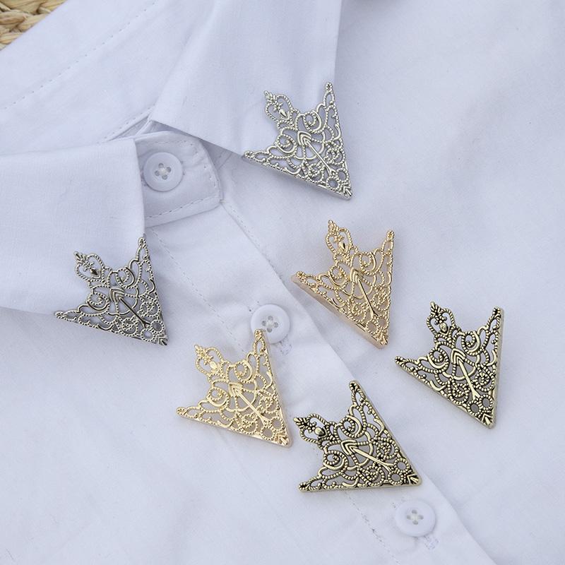Vintage Triangle Shirt Collar Pin Collar Brooch Women Brooch Hollow Out Metal Brooch Clothes Decorative Cute Jewelry Accessories