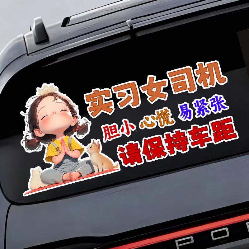 Reflective Warning Sticker: Timid & Flustered Female Driver, Keep Distance - Ideal for New/Practicing Drivers