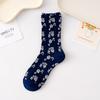 Korean Retro Floral Mid-Calf Embossed Women's Knit Socks