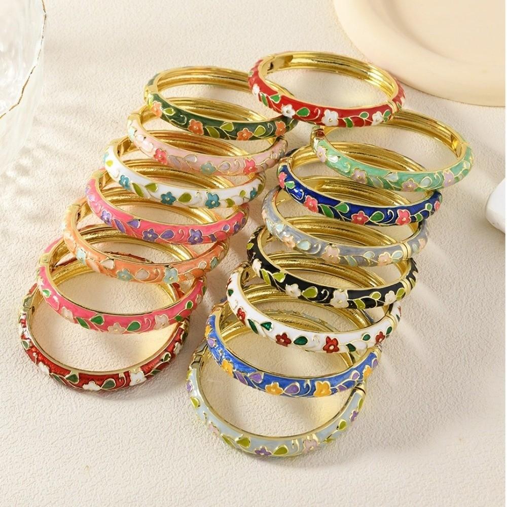 Floral Motifs Cloisonne Bangle Zinc Zinc Zinc Alloy Dropped Glaze Bracelet Party Jewelry