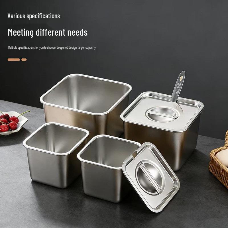 Stainless Steel Square Seasoning Jar with Lid - Commercial Kitchen Condiment Canister(Box).