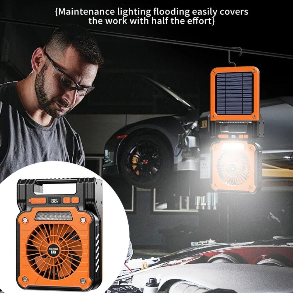 Folding Design Camping Fan Green/Orange Solar Electric Fan LED Camping Light Car Camping