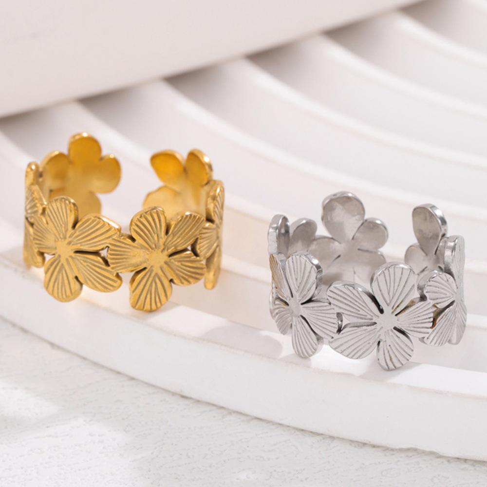 Women's Adjustable Titanium Steel Floral Ring - Non-fading, Lightweight Luxury Design Jewelry