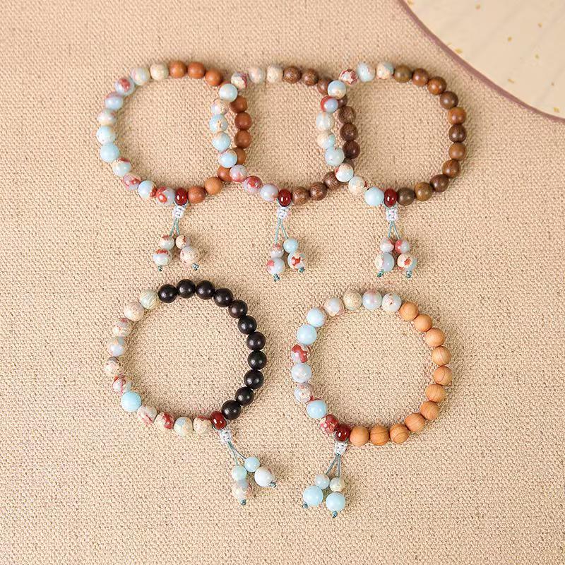 Red Pine & Green Sandalwood Beads with Shoushan Stone Bracelet - Unisex Chinese Style