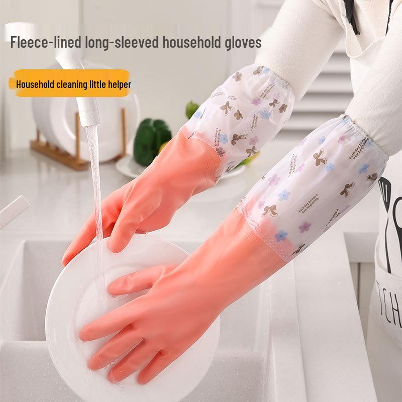 Thickened Long Cuff Waterproof Latex Kitchen Gloves for Dishwashing and Laundry