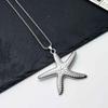 Retro Silver Starfish Pendant Sweater Necklace - Unisex Ocean-Themed Accessory