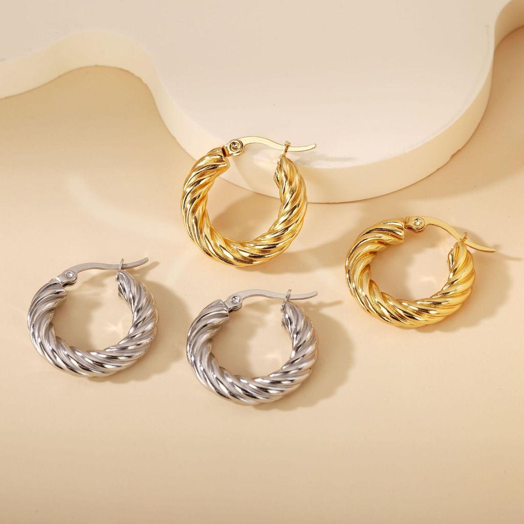 2025 New Style Twisted Titanium Circle Earrings for Women - Low MOQ, Mixed Batch, Dropshipping, Sample Orders Available