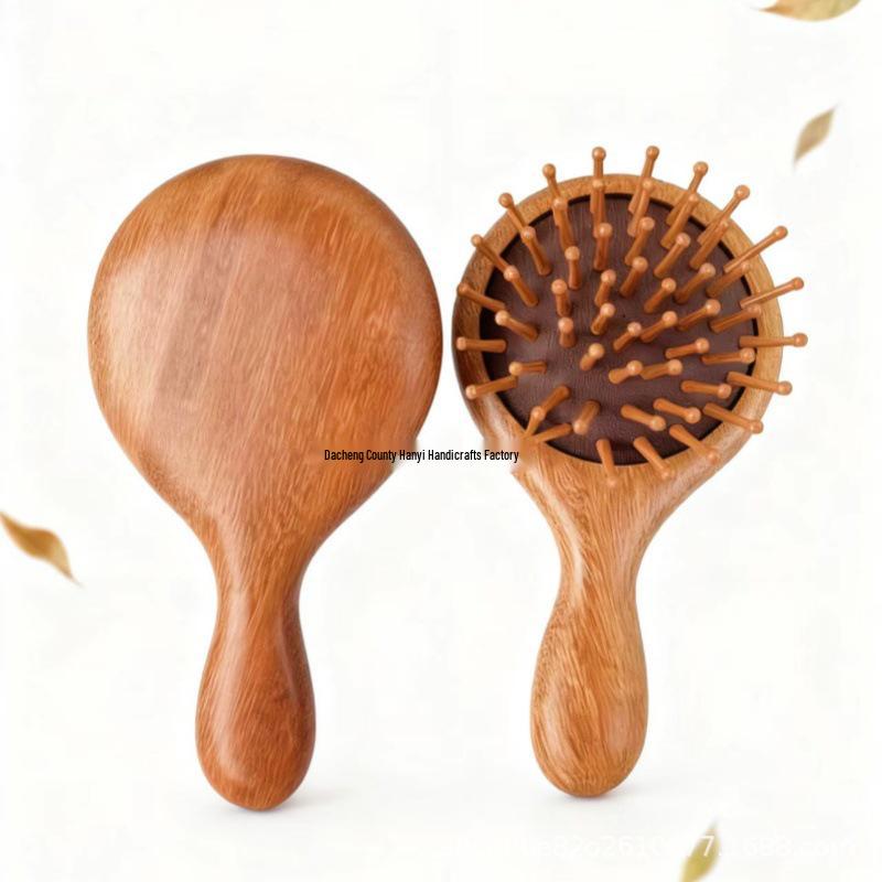 Sandalwood Cat Air Cushion Comb - Small, Round, Portable Hair Smoothing & Head Massage Souvenir.