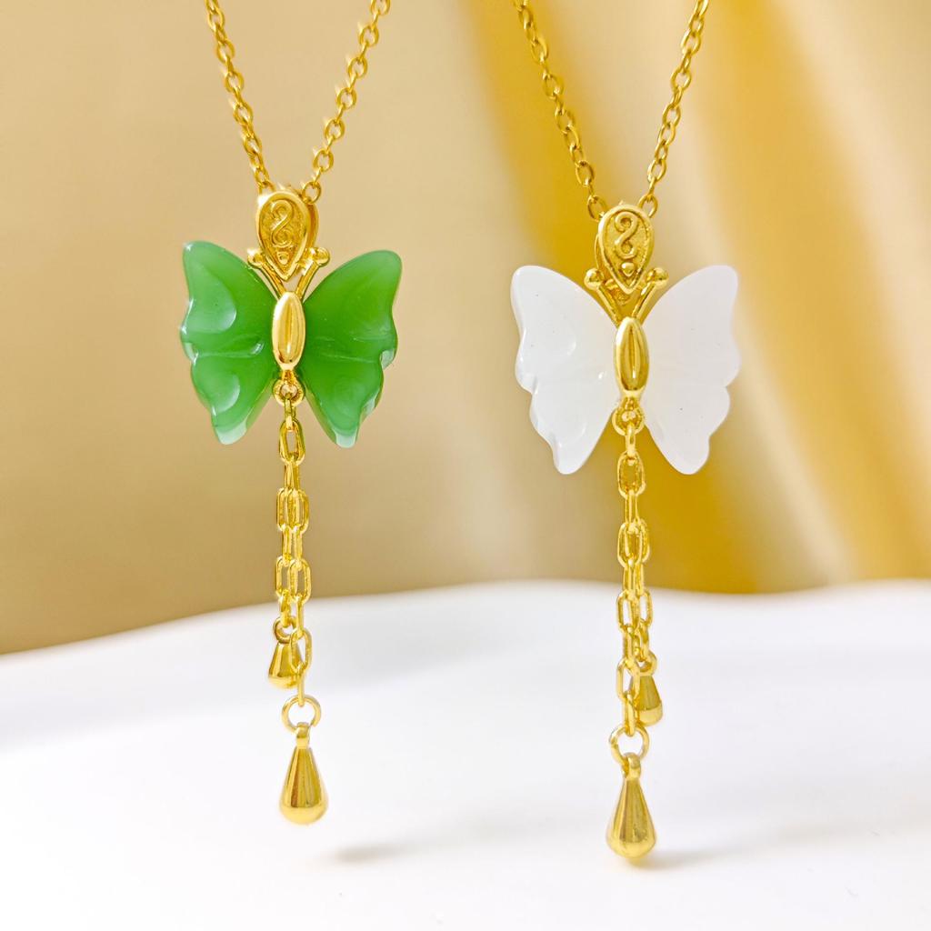 Modern Chinese Hetian Jade Butterfly Tassel Necklace - Elegant Clavicle Chain for Women