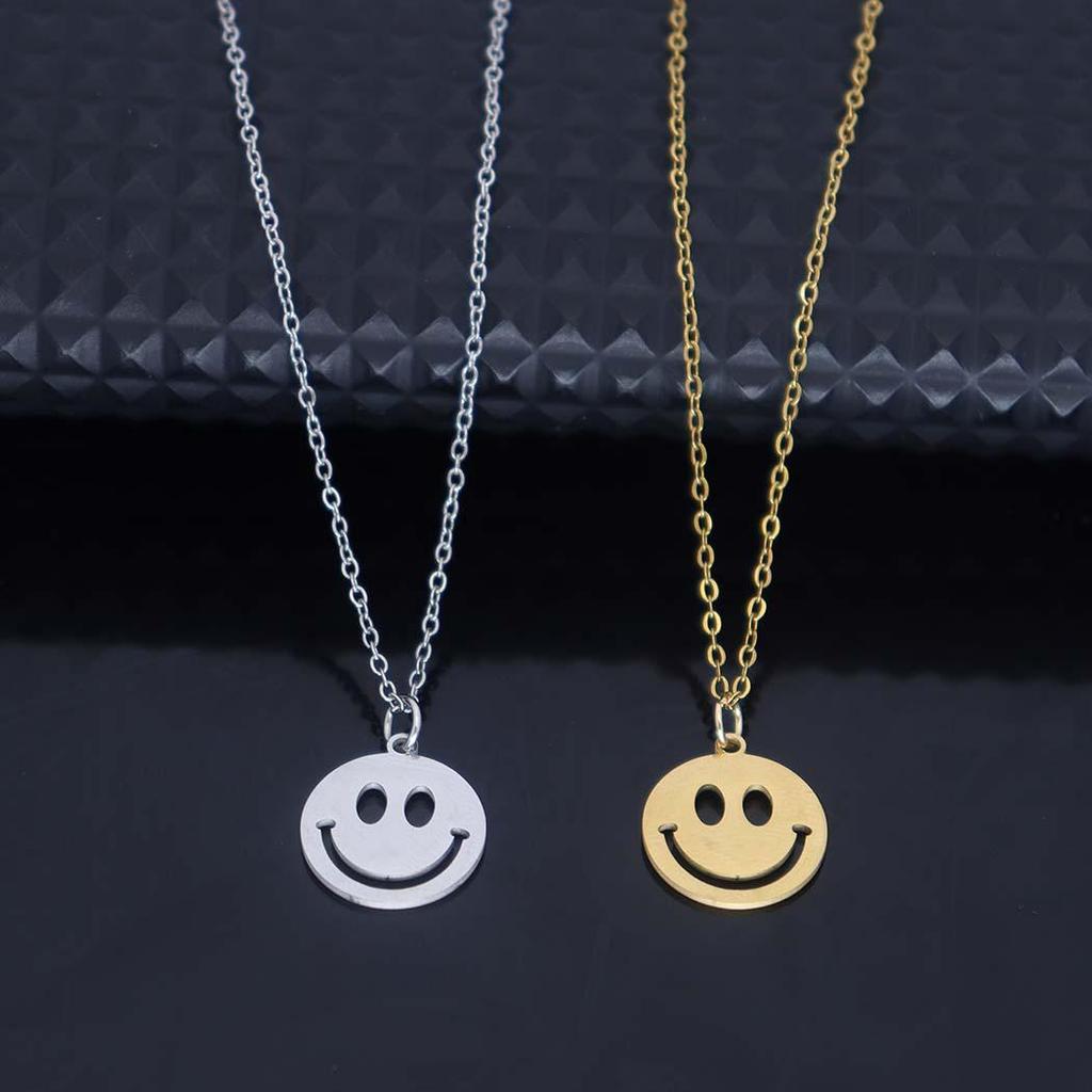 Stainless Steel Smiley Face Pendant Necklace - Women's Trendy, Simple, Versatile Jewelry