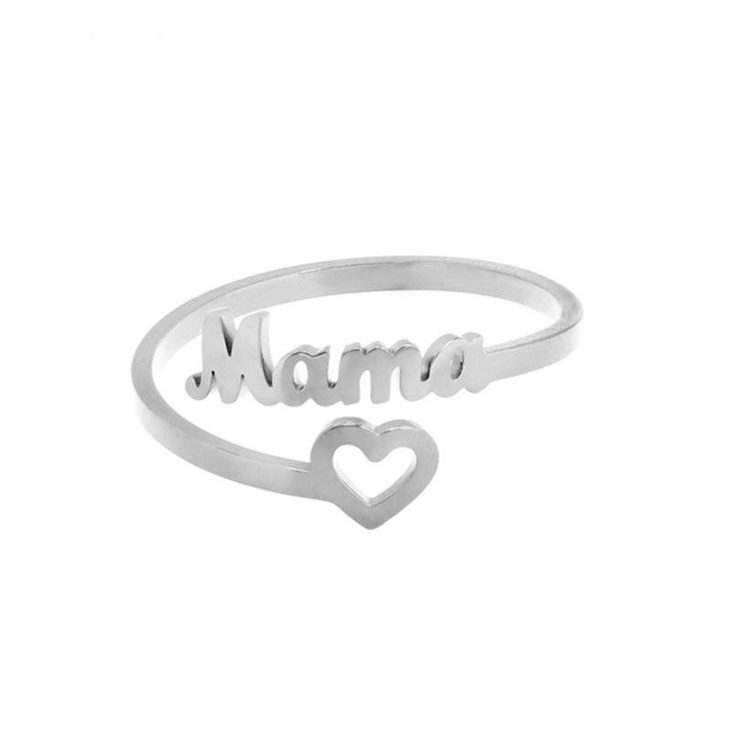 Stainless Steel Adjustable Mom Ring - European American Fashion Letter Design for Mother's Day Gift