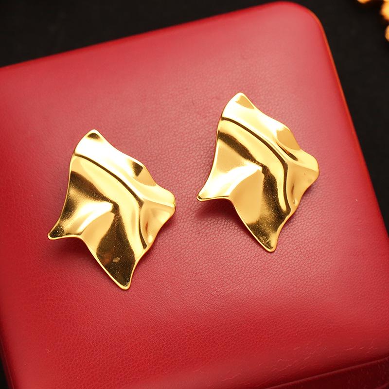 18K Gold-Plated Irregular Stainless Steel Stud Earrings for Women - Trendy, Simple, and Fade-Resistant.