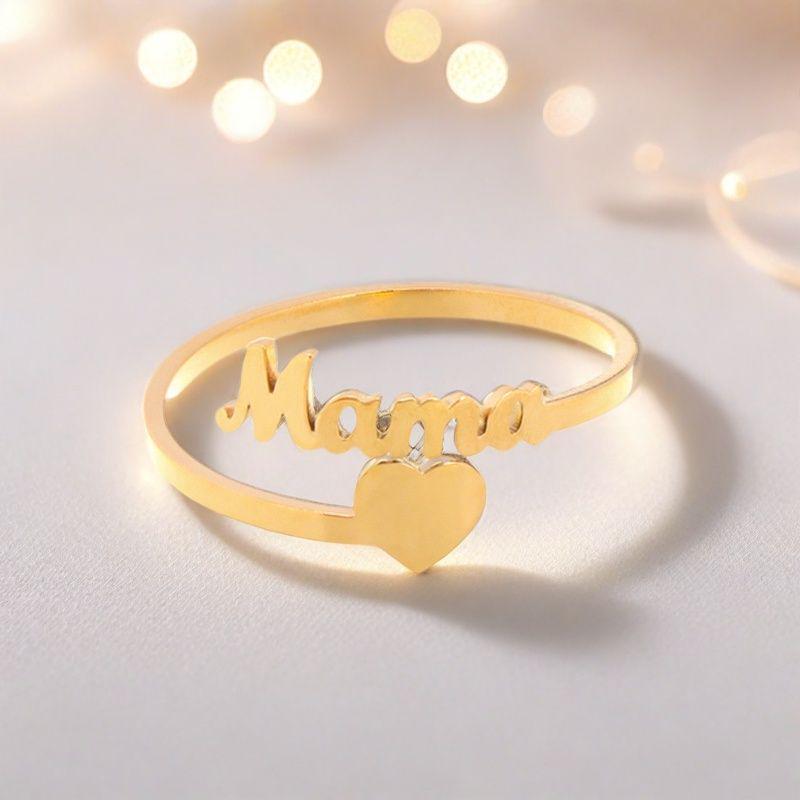 Creative Heart-Shaped English Letter 'Mama' Ring - Fashionable European and American Open Design