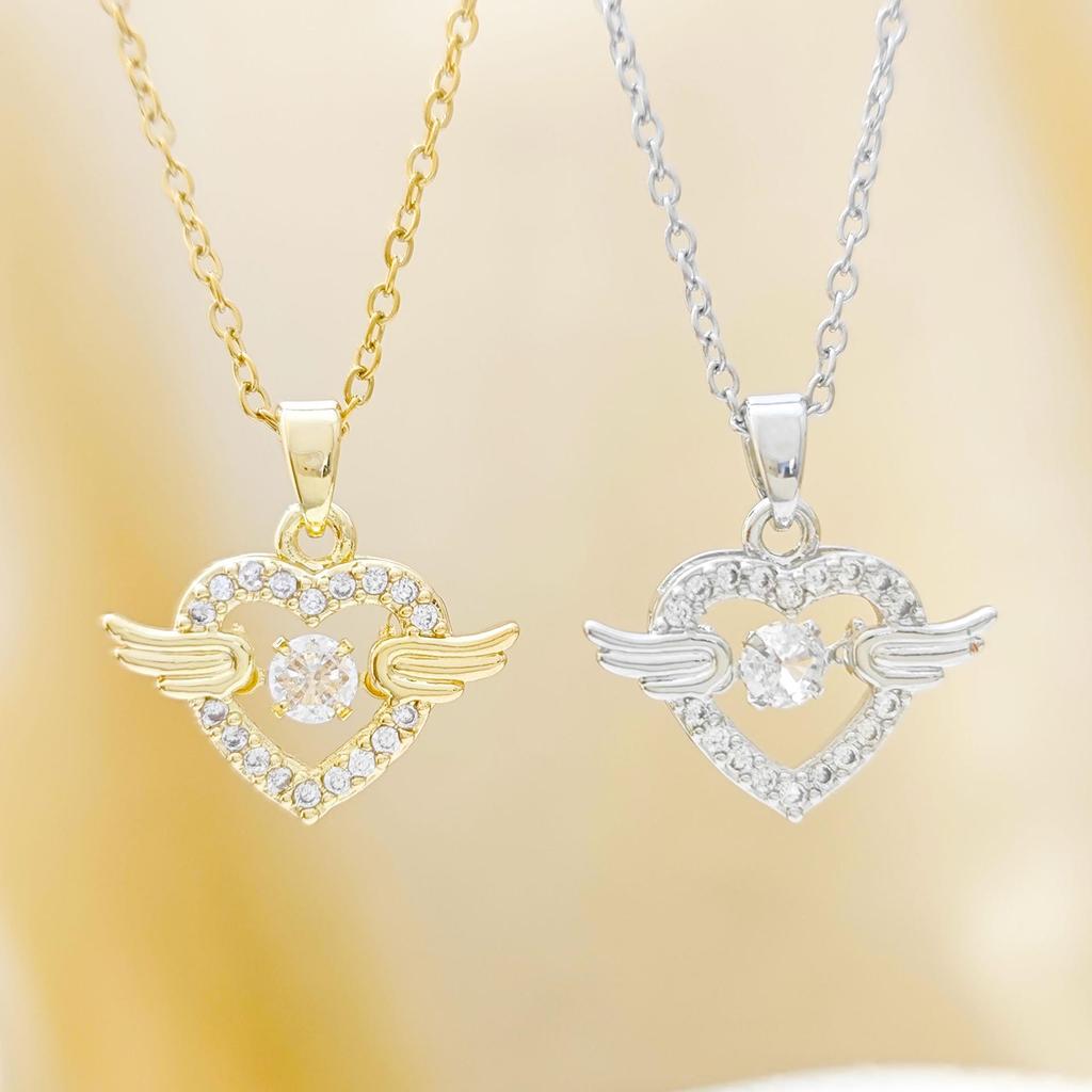 Influencer Style Angel Wings Heart Necklace: Exquisite Zirconium & Titanium Clavicle Chain Pendant for Women