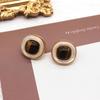 Retro Hong Kong Style Geometric Coffee Stud Earrings for Women - Elegant, Versatile, and Luxurious.