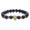 Alloy Leopard Head Volcanic Rock Stretch Bracelet