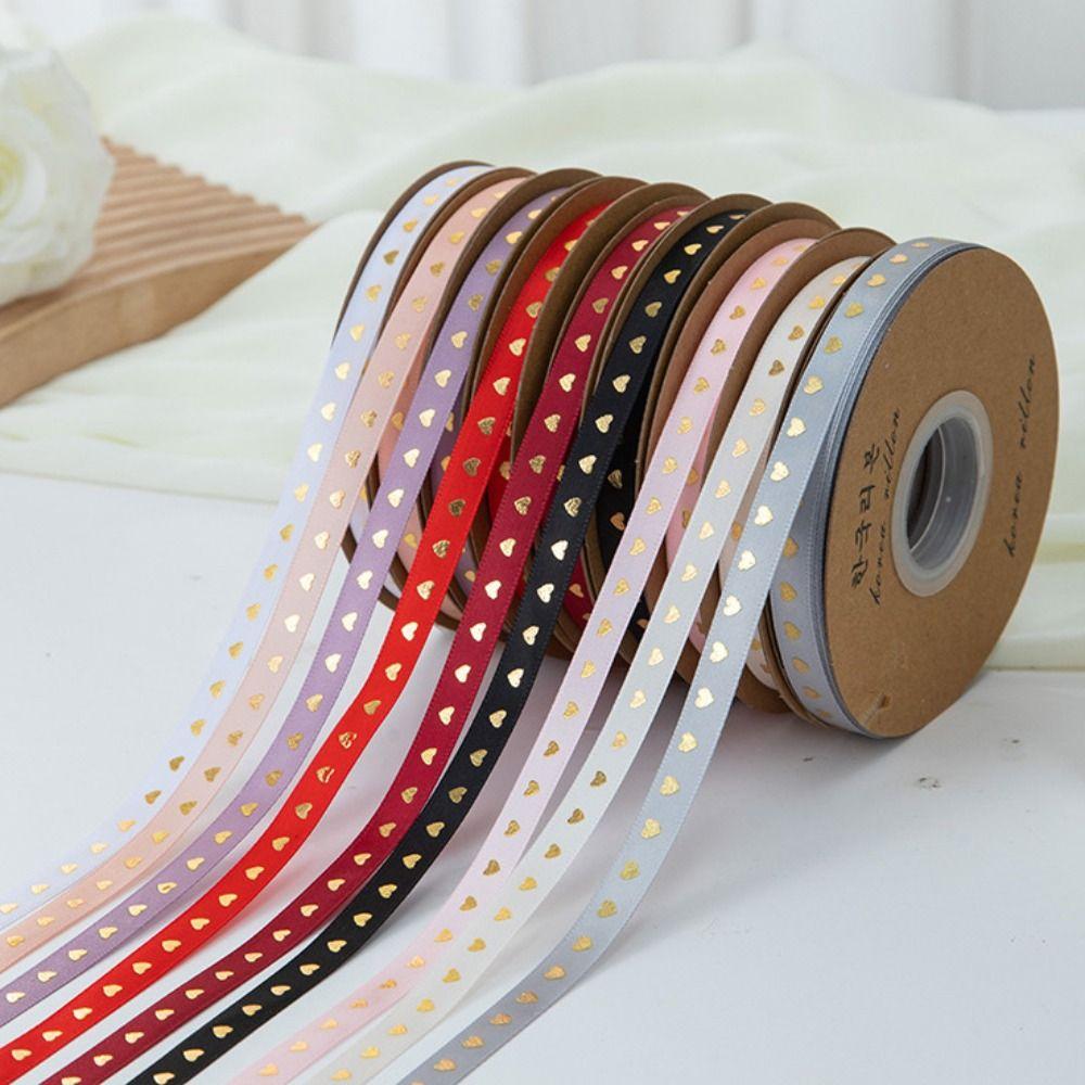 Classic Gold-stamped Heart Ribbons 1cm*30 meters Gift Packaging Ribbon New Year