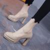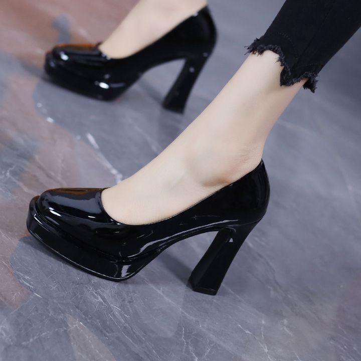 Waterproof table pure desire wind nude patent leather high heels women's 2025 new fashionable pink versatile thick heel dress single shoes