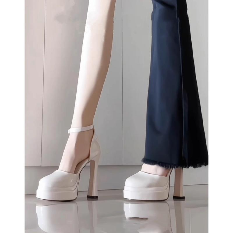 2025 French Mary Jane high heels wedding shoes waterproof table sexy super high heel Barbie shoes half bag head sandals women