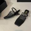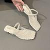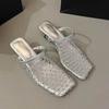 Summer new favorite! Niche design fishing net half slippers woven mesh hollow special-shaped and high-heeled outer slippers women