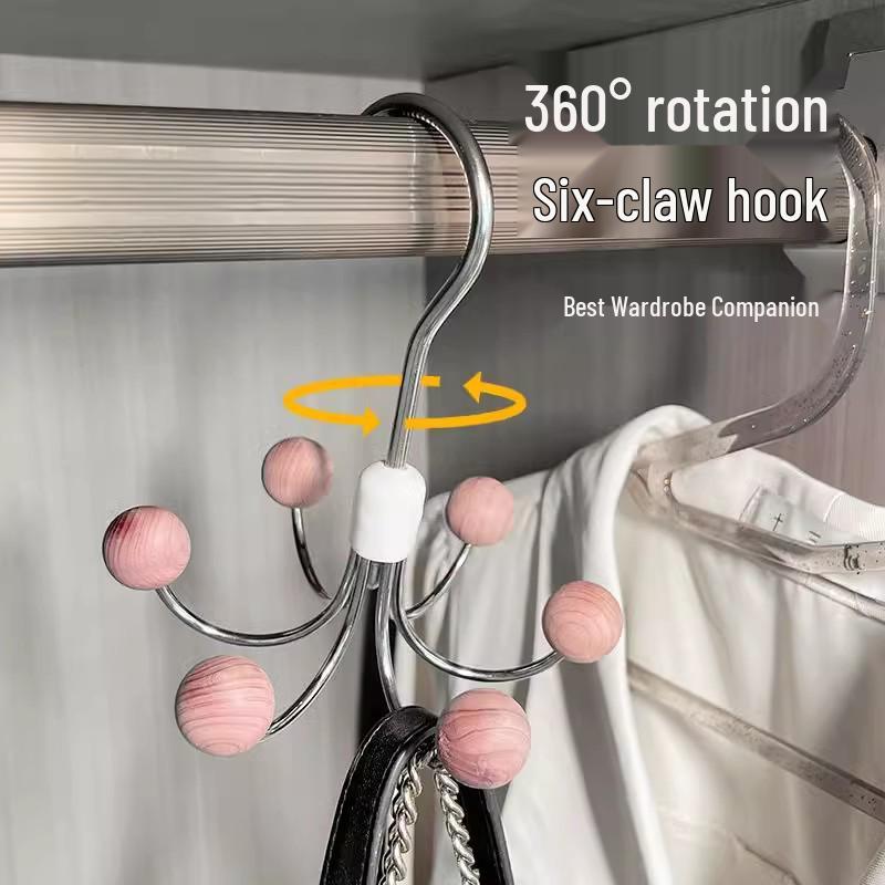 360° Rotating Multi-functional Six-Claw Wardrobe Storage Hook for Dorms & Daily Use