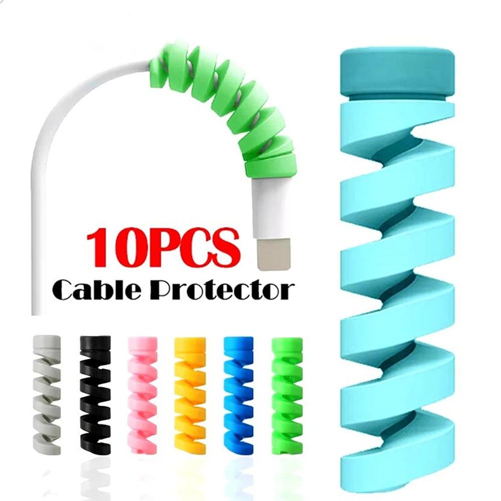 10pcs Cable Protector Silicone Charge Cable Spiral Winder Wire End Cord Savers Cover For Phone USB Charger Cable Accessories