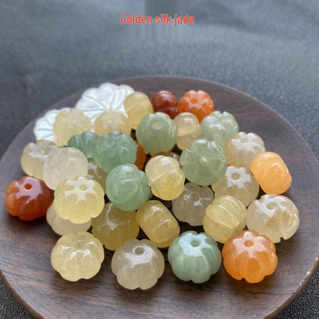 Gold Thread Jade Pumpkin Beads for DIY Jewelry Accessories